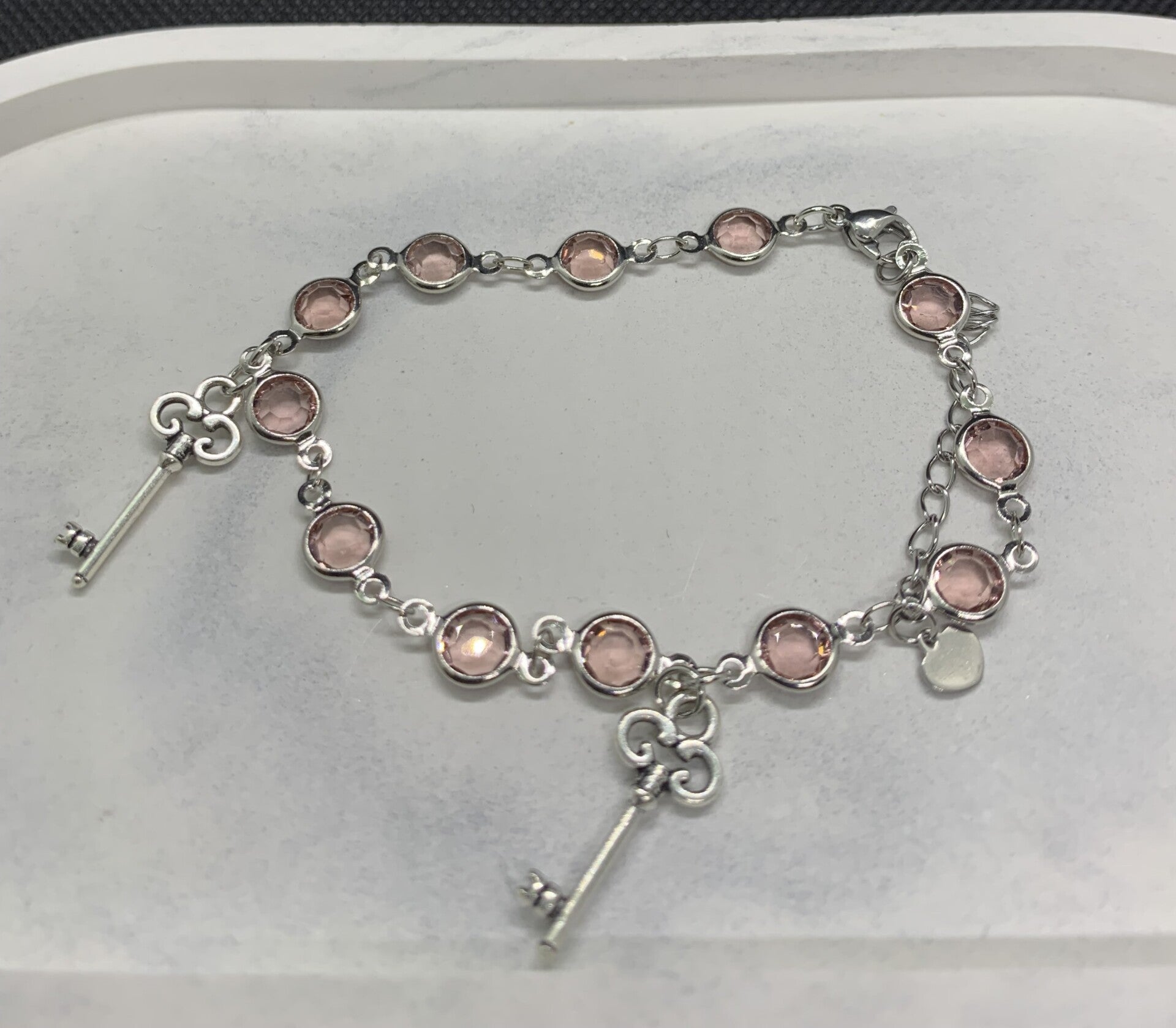 Armband aus Kupfer- Rhodium Beschichtung mit zwei verschiedenen Anhängern und verschieden Farben, Länge: 17,5cm mit Verlängerung 4,5cm kann bequemlos auf die benötigte Länge angepasst werden